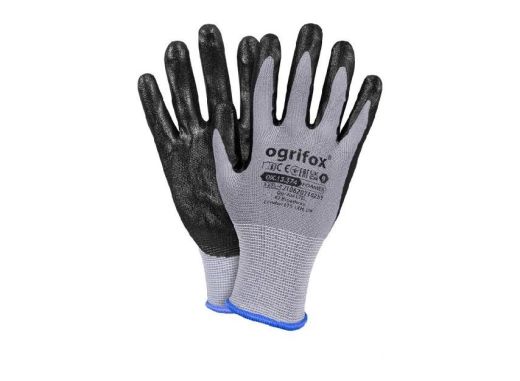 Rękawice ochronne wykonane z poliestru, powlekane nitrylem.
