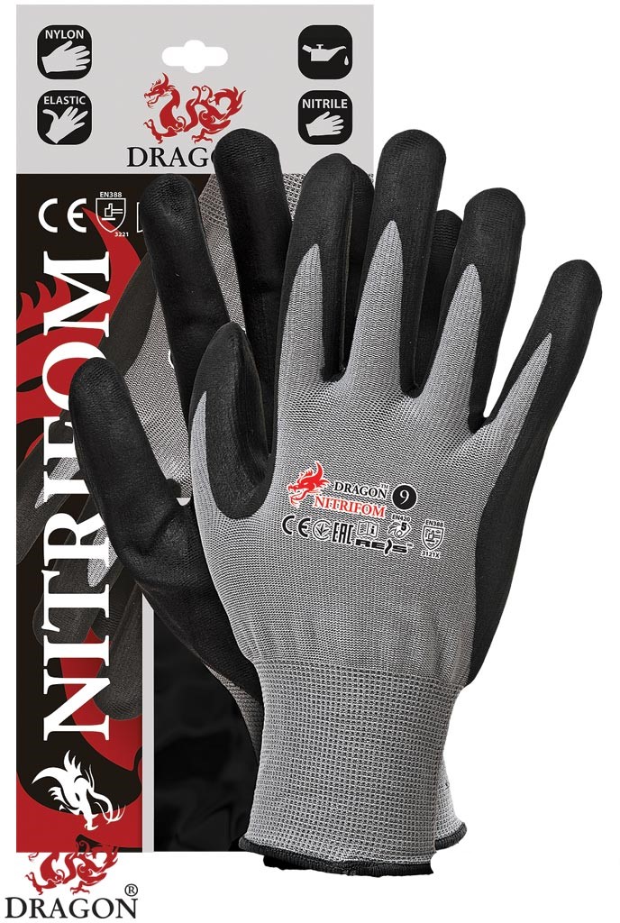 - Nitryl zwiększa odporność na smary i oleje, a technologia FOAM zwiększa elastyczność rękawicy.