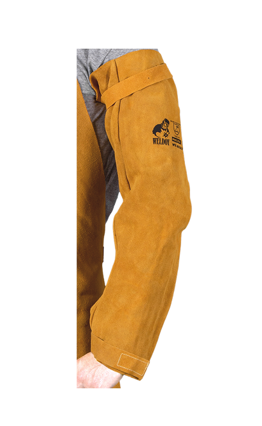 Skórzane zarękawki spawalnicze.